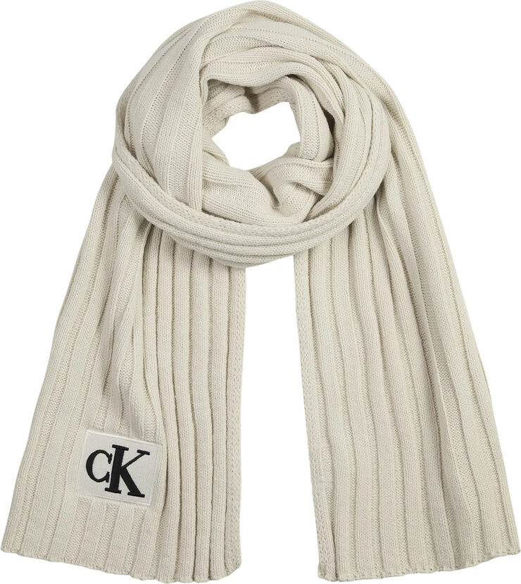 Beige tørklæde fra Calvin Klein. Perfekt til de kolde vintermåneder. Tørklædet er fremstillet af 100% akryl.