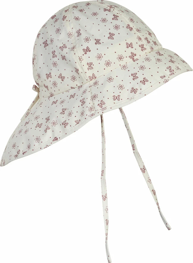 Sød sommerhat med praktisk skygge, der går langt ned i nakken. Hatten beskytter dit barns ansigt, hovedbund og nakken med en høj solbeskyttelsesfaktor. Bindebånd under hagen og bagpå hovedet sikrer hatten en god pasform. ENFANT-logo bagpå skygge. Hatten fås i 4 forskellige farver og 2 med all-over-print. Size 6-12M = 47 cm/ 1-2 Y = 49 cm/ 2-4Y = 51 cm/ 4-6 Y= 52 cm/ 6-8Y = 53 cm