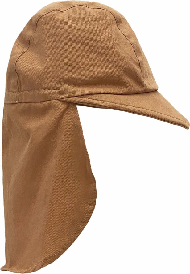 Klassisk legionær-solhat med en fast skygge foran og en lang skygge i nakken, så både ansigt, ører og hals er beskyttet mod solen. Solhatten er lavet af 100 % GOTS-certificeret økologisk bomuld, som er åndbart. Hatten kan nemt justeres med en elastik-clips på bagsiden og passer fra 1-3 år.