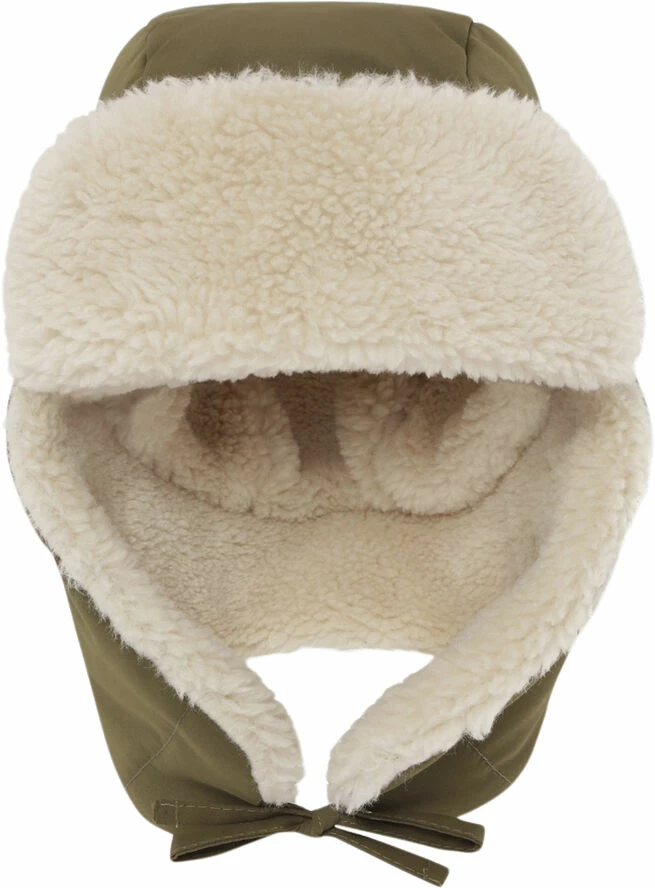 "Breathable and waterproof snow hat with soft teddy polyester lining inside. The inside padding is THERMOLITE filling made with recycled fibers. The surface is treated with BIONIC FINISH ECO coating, a highly breathable and water-repellent impregnation. Closes with a button."