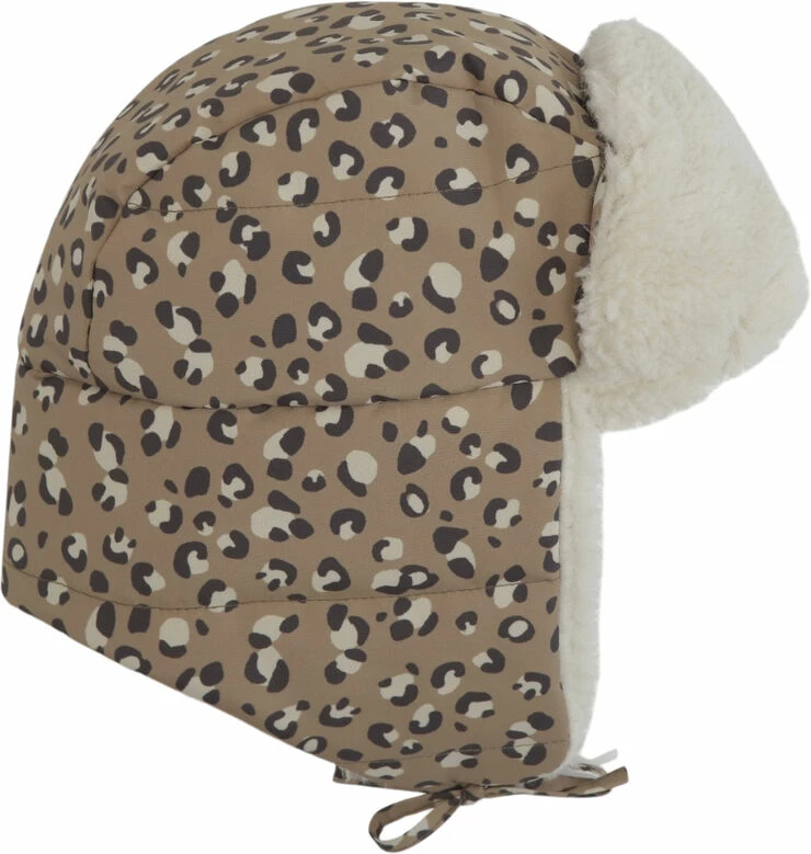 "Breathable and waterproof snow hat with soft teddy polyester lining inside. The inside padding is THERMOLITE filling made with recycled fibers. The surface is treated with BIONIC FINISH ECO coating, a highly breathable and water-repellent impregnation. Closes with a button."