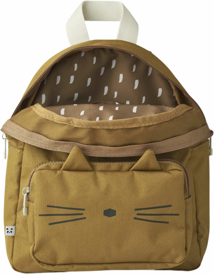 Super cool backpack for your child. The straps are adjustable and can be costumized as needed and even closes at the back for better comfort. The lining is in a cool contrast colour which makes every backpack unique. The backpacks are made of 100% recycled polyester and have our Liewood animals on the front pocket. Use the backpack for kindergarten stuff or for a weekend trip filled with toys. The backpack fits children aged 3-7 years. This backpack has a strap/buckle across the chest which is required in many kindergartens.