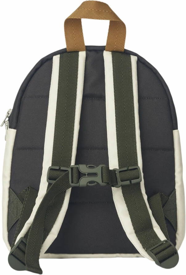 RYGSÆK TIL BØRN Den er tilstrækkelig kompakt til, at barnet kan bære den selv, og samtidig så rummelig, at der er plads til alt det nødvendige. Allan rygsækken er perfekt til større børn. Den er unik med for i kontrastfarve, og den er lavet af genbrugspolyester, der er nemt at rengøre – ideel til at have med i børnehaven eller fyldt op med legetøj til weekendturen. OM PRODUKTET Materiale- 100% genanvendt polyester Let materiale Lomme foran Justerbare remme Rem rundt om brystet giver en god vægtfordeling Til børn på 3-7 år DETALJER