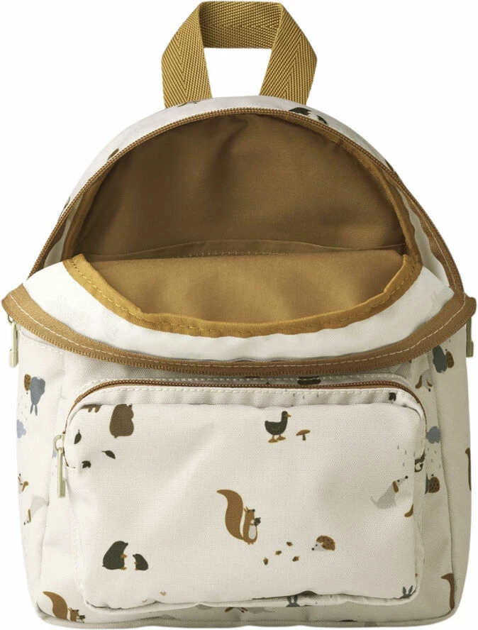 Super cool backpack for your child. The straps are adjustable and can be costumized as needed and even closes at the back for better comfort. The lining is in a cool contrast colour which makes every backpack unique. The backpacks are made of 100% recycled polyester and have our Liewood animals on the front pocket. Use the backpack for kindergarten stuff or for a weekend trip filled with toys. The backpack fits children aged 3-7 years. This backpack has a strap/buckle across the chest which is required in many kindergartens.