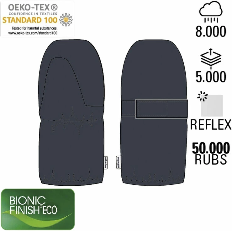 Varme nylon luffer med foer fra Mikk-Line. De er perfekte til den kolde, danske vinter. Lufferne er slidstærke samt fremstillet af vandtæt materiale og de blokerer den kolde vind.Lufferne er med lynlås og kan derfor nemt åbnes og lukkes. Elastikken ved håndleddet holder vinden ude.Fordele: Vindtæt og fremstillet af vandtæt materiale Varme luffer med foer til babyer Slidstærke Refleksdetaljer, der gør, at dit barn kan ses i mørke.Egenskaber: Vandsøjletryk på 8000 mm Åndbarhed på 5000 100% Nylon