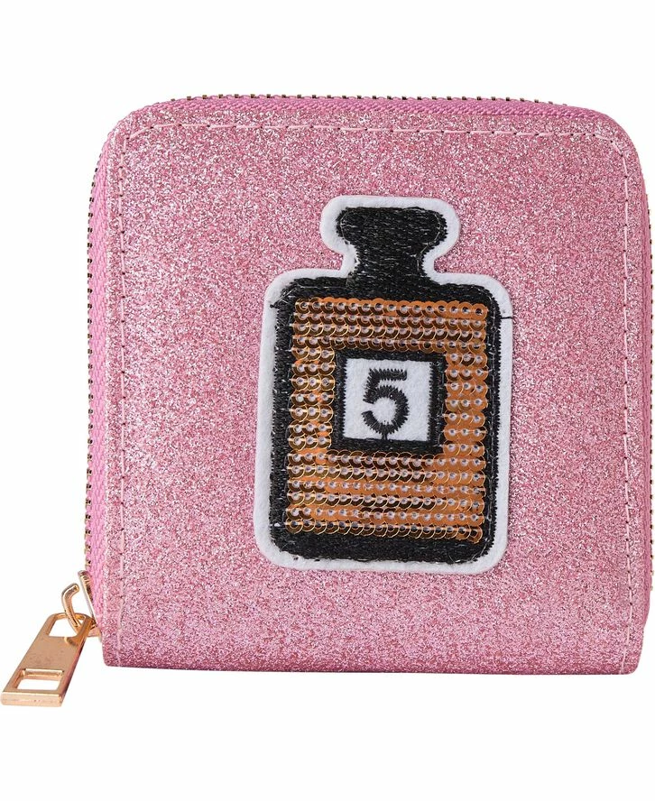 Feel fancy and fresh with our Glitter Perfume wallet. With a sequined perfume bottle design, protect and carry your essential cards with the included slots and compartments.