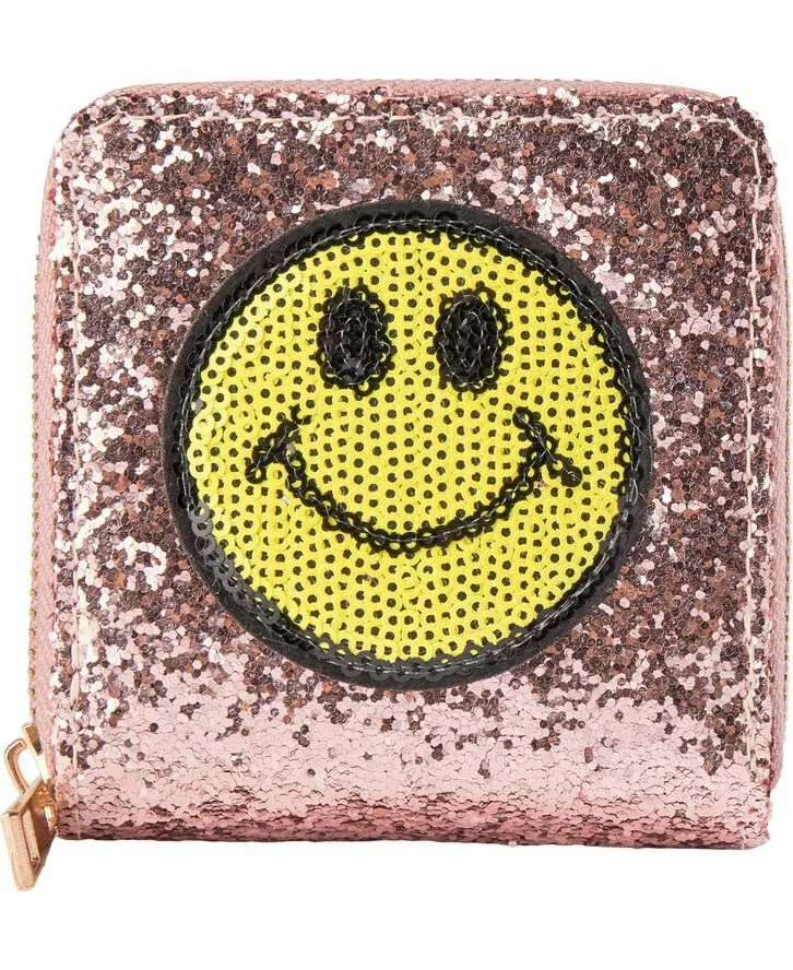 Add sparkle and smiles to your day with our Glitter Smile wallet. With a vibrant yellow smile patch design, protect and carry your essential cards with the included slots and compartments.