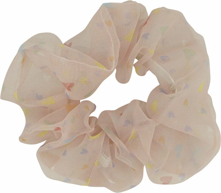 Our cute and dainty scrunchie sprinkled with mini hearts, in a peach design.