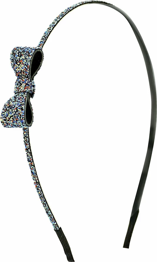 A dainty headband designed with a sparkly mini bow, in the blue multi colour.