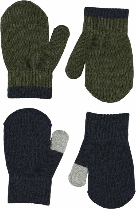 To par baby strik handsker i mørkeblå og grøn.