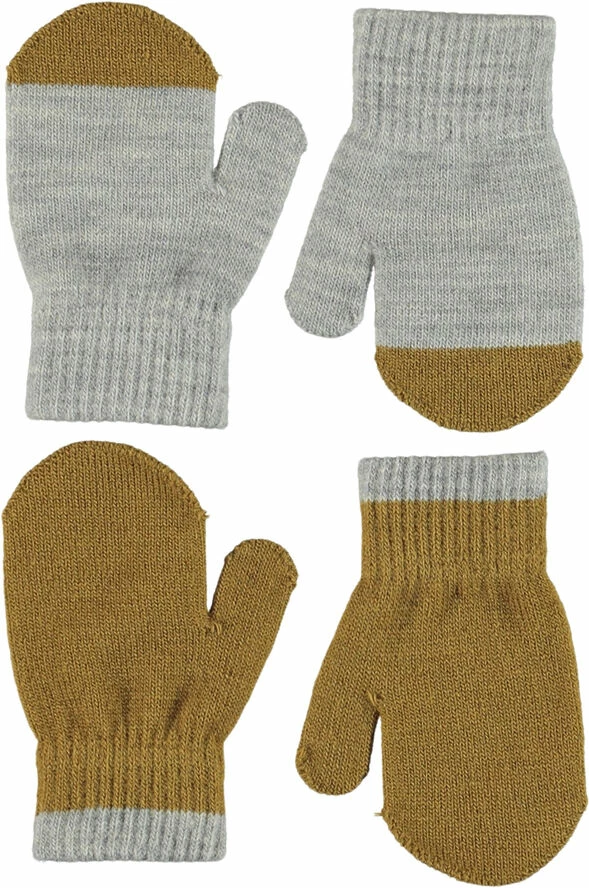 To par baby strik handsker i senneps gul og grå.