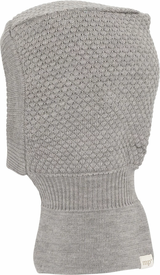 Double layered elephant hat in classic bubble-knit pattern. Snug fitted around the face and neck sec