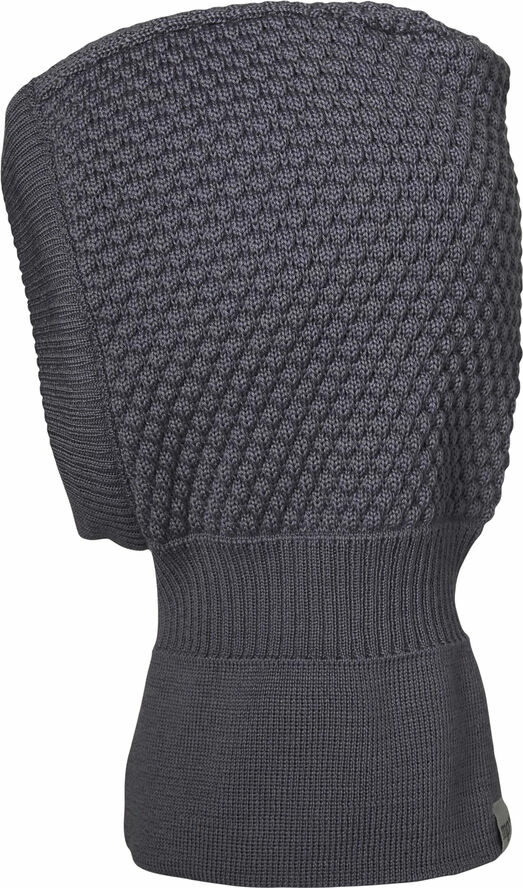 Double layered elephant hat in classic bubble-knit pattern. Snug fitted around the face and neck sec