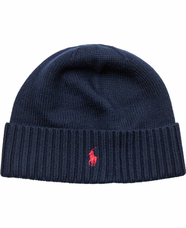 Strikhue fra Polo Ralph Lauren i den blødeste kvalitet bestående af 100% uld. Huen er en klassisk 'beanie' med logodetalje på den brede, opfoldede ribkant. En klassisk hue i en lækreste kvalitet.