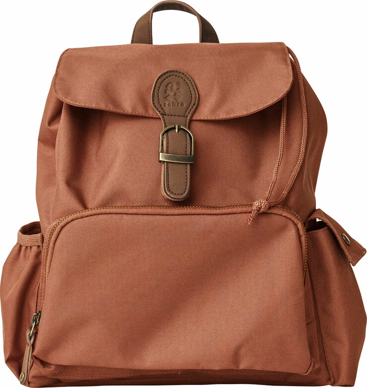Kombinér stil, komfort og funktionalitet med denne bæredygtige, multifunktionelle rygsæk med kunstlæderdetaljer. Tasken ses her i farvevarianten sweet tea brown. 19 PET-flasker blev genanvendt i tilblivelsen af denne rygsæk. Tasken er ideel til daglig brug vuggestue, børnehave, førskole og videre. Den har plads til en madkasse eller et sæt tøj, vådservietter, bleer, legetøj eller bøger. En flap-over lukning med magnetisk knap åbner forrest indtil et hovedrum med snørreluk. Rygsækken har tre udvendige lommer en lynlåslomme forrest samt to side-lommer, en egnet til en vandflaske og en med magnetisk knaplukning. Det indvendige hovedrum har en inderlomme med lynlås samt to åbne lommer. Justérbare, polstrede skulderstropper samt brystspænde gør rygsækken behagelig at bære for barnet. Det lille håndtag gør rygsækken let at hænge.<br><br>Pleje: Rengøres med en fugtig klud. Brug mild sæbe. Må ikke vaskes. <br>Ved denne artikel kan der forekomme mindre farveafsmitning. Tag hensyn til den mulige afsmitning på andet tøj.<br>Materialer: Yder-stof: 100% R-PET, PU-coatet. Inder-for: 100% genanvendt polyester. Detaljer: metalspænder, kunstlæder. <br><br>ADVARSEL! Må ikke anvendes i nærheden af åben ild.<br><br>Om genanvendt polyester<br>Tasken er lavet af genanvendt polyester fra plastikflasker, som er blevet indsamlet og rengjorte, hvorefter de strimles, omsmeltes og laves til nye genanvendte fibre. Plastikflaskerne får derved et nyt liv i stedet for bare at ende som affald.