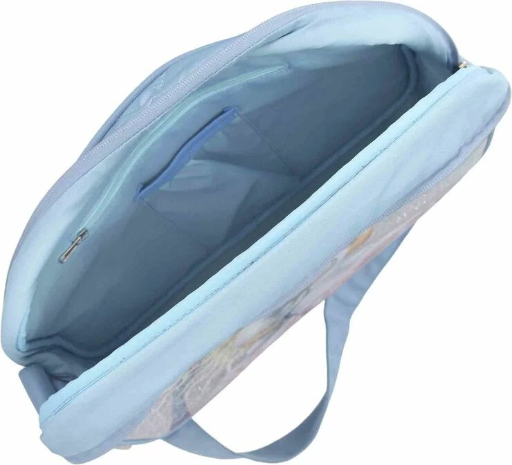 Smart og praktisk skuldertaske i flot isblå med yndigt TOPModel Iceworld design med nuttet baby isbjørn på metallisk glitter baggrund og med trendy quilt detaljer. Tasken har justerbar skulderrem og et stort rum samt en større frontlomme, begge med lynlåslukning.