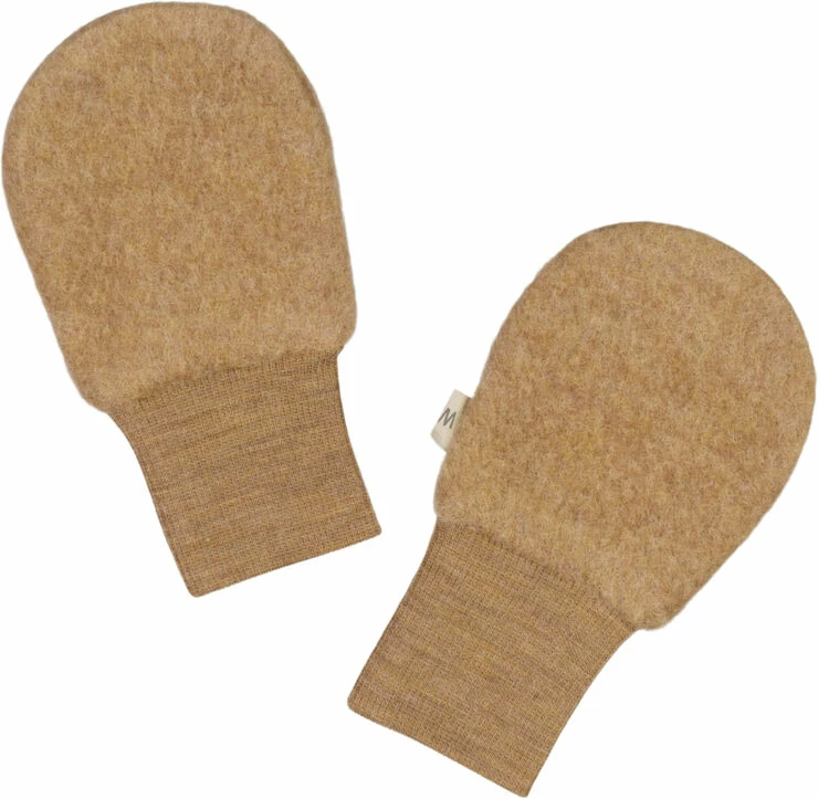 Wheat Skønne luffer i filtet uld til din baby. – Bløde ribmanchetter Wheats uldkollektion bør være en fast del af dit barns garderobe, når vinterhalvåret atter står for døren. Det er dejligt at have på, foruden at være designet til at holde dit barn varmt og tørt. Uld har nemlig den fantastiske egenskab, at det hjælper med at regulere kropstemperaturen på dit barn, så han/hun hverken koger over eller fryser. Wheats uldluffer er perfekte at give din baby på, når han/hun skal på tur eller sove lur i barnevognen. De kan nemt trækkes udover overtøjet pga. ribkanten, så dit barns hænder ikke bliver udsat for kulde. Sammensætning: – Standard 100 by OEKO-TEX® – 100% Merinould