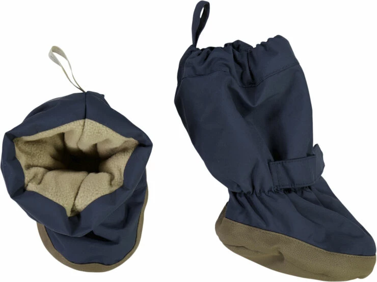 Wheat Overtøj Varme overtræksfutter i åndbart og vandtæt materiale til din baby. – Blødt fleecefoer – Elastik i toppen, der sørger for at lukke tæt omkring benet – Justerbar velcrostrop ved anklerne – Blød elastik ved anklerne – Skridsikkert materiale under – Reflekser Wheats tekniske overtræksfutter er lavet i åndbart og vandtæt materiale og er perfekte til de mange kolde efterårs- og vinterdage. De er designet med komfort for øje, da materialet er slidstærkt og smudsafvisende og derfor nemt at rengøre og vedligeholde. Overtræksfutterne er beregnet til vinter, da de har blødt fleecefor og er lavet til at holde dit barn varmt hele dagen lang. De har mange praktiske detaljer som blandt andet justerbar velcrostrop ved anklerne og elastik oppe omkring benet. Tekniske funktioner: Vandsøjletryk: 10.000 mm Åndbarhed: 8.000 g/m2/24 timer Slidstyrke: 50.000 mm OEKO-TEX® 100 certificeret PFC-fri Fluorfri vand- og smudsafvisende finish (BIONIC FINISH ECO) Letvægtet teknisk polstring Tapede sømme Sammensætning: Ydre materiale: 100% Genanvendt nylon Polstring: 100% Polyester Fleecefoer: 100% Polyester