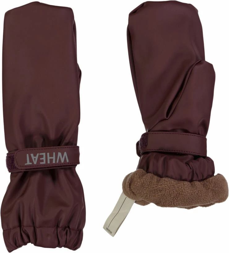 Wheat Overtøj Praktiske vandtætte luffer med velcro til dit barn. – Foret med blød fleece – Elastik ved manchet, så de lukker af for regn og slud – Justerbar velcrostrop omkring håndleddet – Reflekser – Ensfarvet Wheats klassiske regnluffer er både behagelige og praktiske at have på. De er vandtætte og har et blødt fleecefoer, som gør dem perfekte til den evigt skiftende sommer- og efterårssæson. Regnlufferne har en justerbar velcrostrop om håndleddet for at sikre, at vanterne bliver på plads. Der er også elastikker ved kanterne, så de kan fastgøres udenpå overtøjets ærmer. Tekniske detaljer: Vandsøjletryk: 8.000 mm OEKO-TEX® 100 certificeret Alle sømme er vandtætte og svejset Sammensætning: 100% Genanvendt polyester med polyurethane coating Foer: 100% Genanvendt polyester