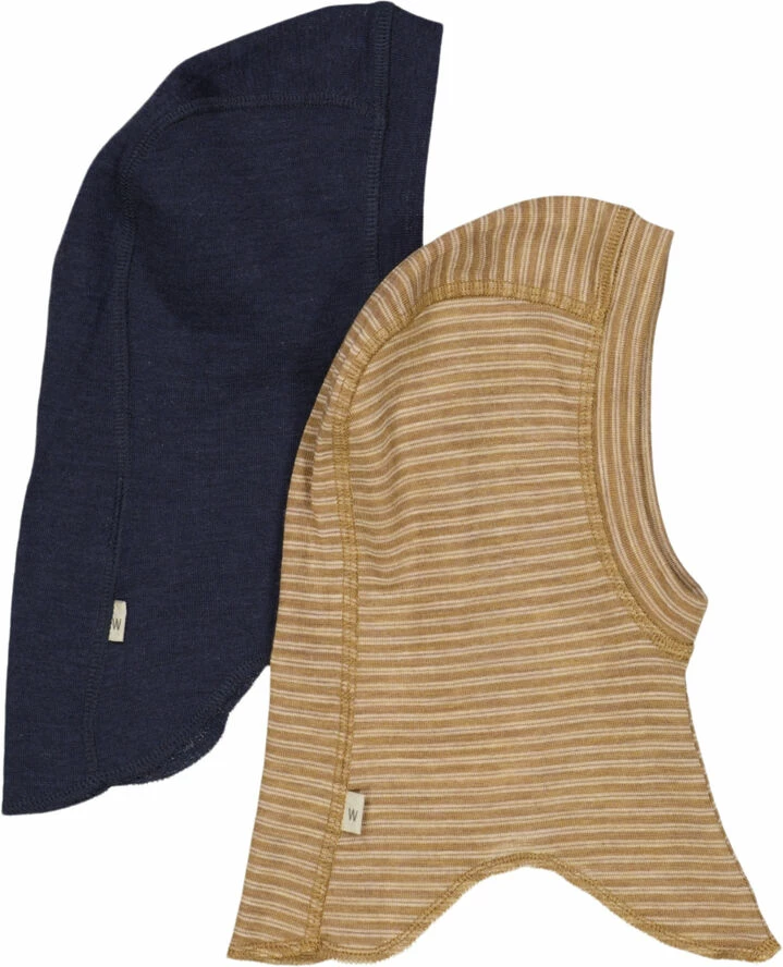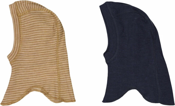 Wheat Praktisk sæt med to elefanthuer i blød merinould til din baby. – En i ensfarvet – En med striber Wheats uldkollektion bør være en fast del af dit barns garderobe, når vinterhalvåret atter står for døren. Det er dejligt at have på, foruden at være designet til at holde dit barn varmt og tørt. Uld har nemlig den fantastiske egenskab, at det hjælper med at regulere kropstemperaturen på dit barn, så han/hun hverken koger over eller fryser. Wheats bløde balaclava er behagelig at have på og er perfekt til den kolde efterårs- og vintersæson. En sand vinder for børn, der har brug for noget ekstra varme og beskyttelse omkring ører, hoved og hals, når de opholder sig udendørs. De fås i smukke farver og søde håndtegnede prints, som er lavet af Wheats in-house designteam. Sammensætning: – Standard 100 by OEKO-TEX® – 100% Merinould