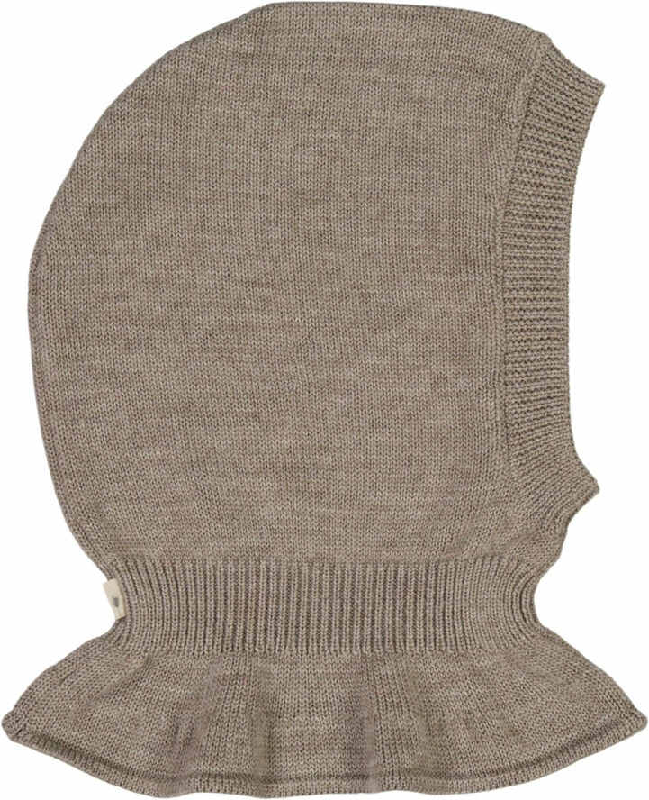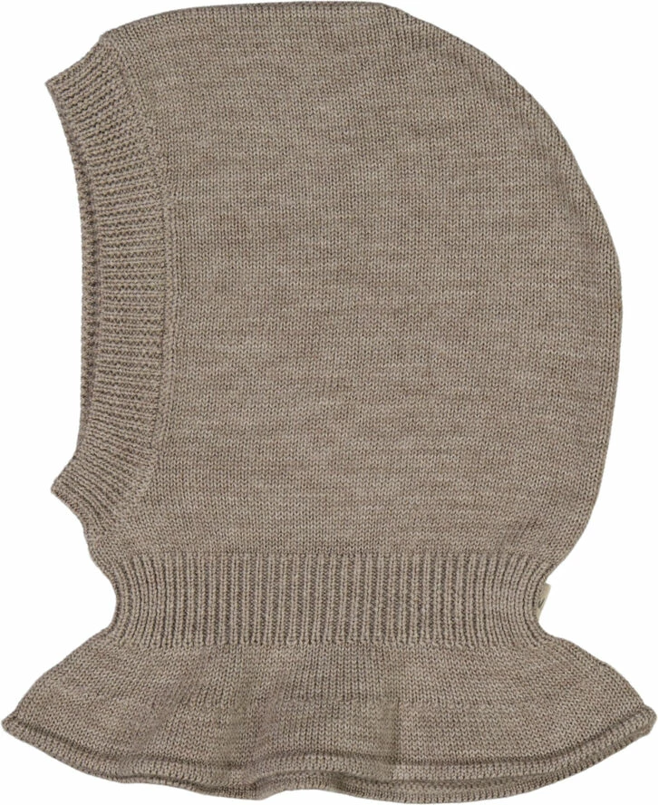 Wheat Overtøj Blød strikket balaclava i merinould. – Ribkant rundt om ansigtet – Rib i halsen Wheats bløde balaclava er behagelig at have på og er perfekt til den kolde efterårs- og vintersæson. En sand vinder for børn, der har brug for lidt ekstra varme og beskyttelse omkring ører, hoved og hals, når de opholder sig udendørs. Den har en ribkant rundt om ansigtet og ved halsen for at sikre, at balaclavaen bliver på plads. Sammensætning: OEKO-TEX® 100 certificeret 100% Merinould